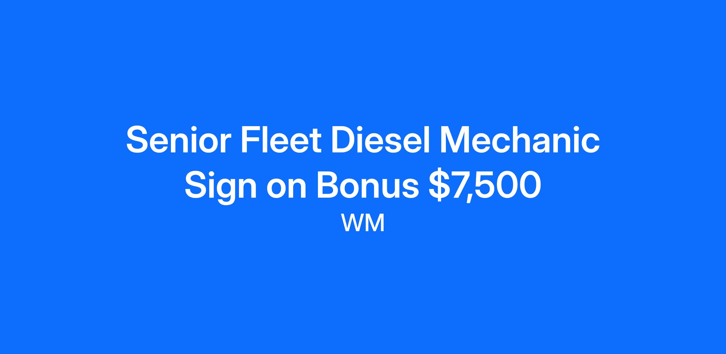 Career progression, stability for your family, and a safe environment to work. That’s what you get as a Senior Diesel Mechanic at WM – and more.