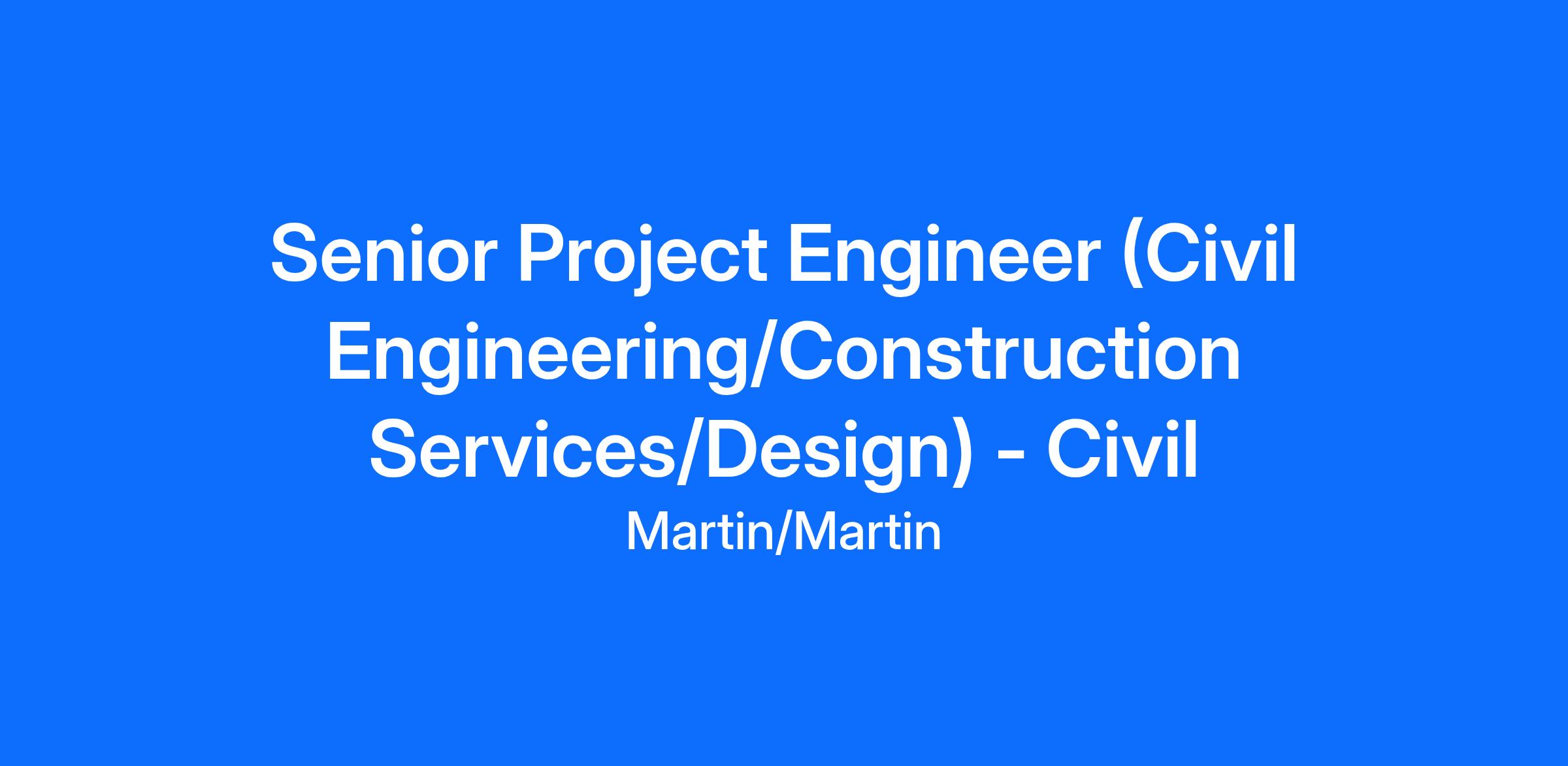 Martin/Martin is looking for an experienced civil senior project engineer to join our Denver, Colorado office. The position will provide opportunities for civil design throughout the Front Range of Colorado as well as nationally. A successful candidate will be a motivated self-starter with strong technical, project management, and client communication skills.