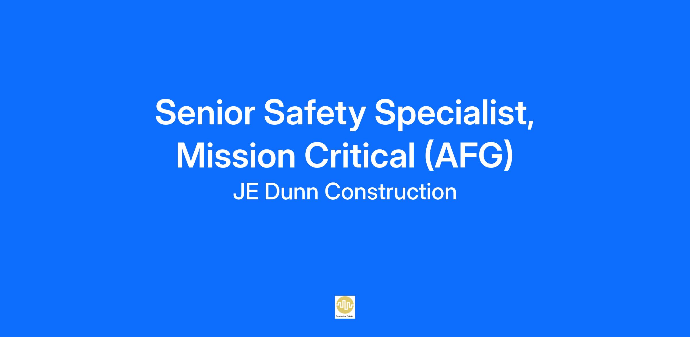 The Senior Safety Specialist will coordinate and implement the field safety program for routine and complex construction projects. This position will be responsible for conducting safety inspections, identifying and documenting abatement of hazardous conditions, writing reports and performing trend analysis. All activities will be performed in support of the strategy, vision and values of JE Dunn.