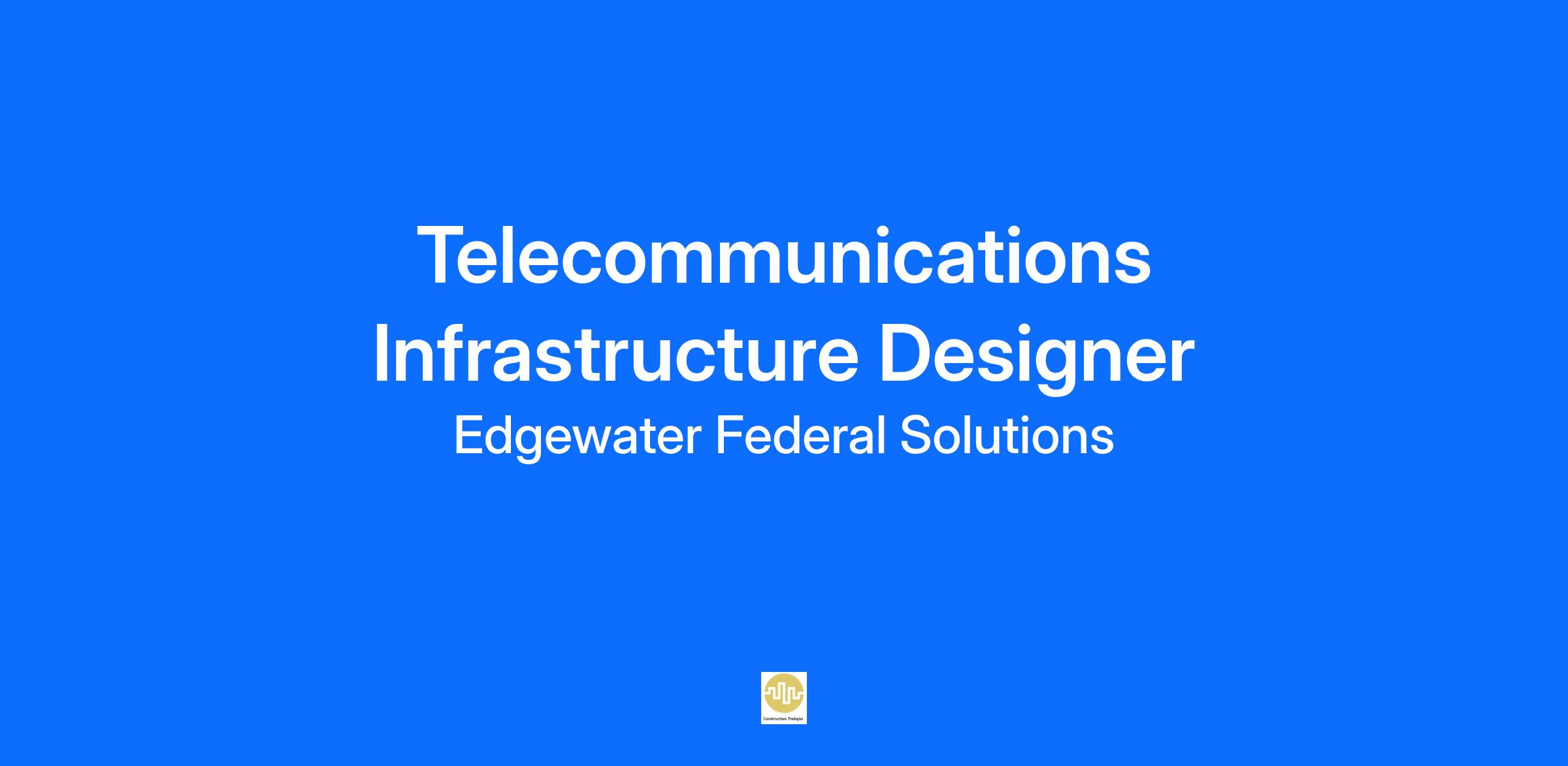 Edgewater Federal Solutions is seeking a skilled and motivated Telecommunications Infrastructure Designer to support the Enterprise Infrastructure providing world class IT Infrastructure services in support of the client’s mission and national security. Responsible for providing modern telecommunications systems, for data, telephone, wireless, LAN, RF Microwave, and encryption capabilities.