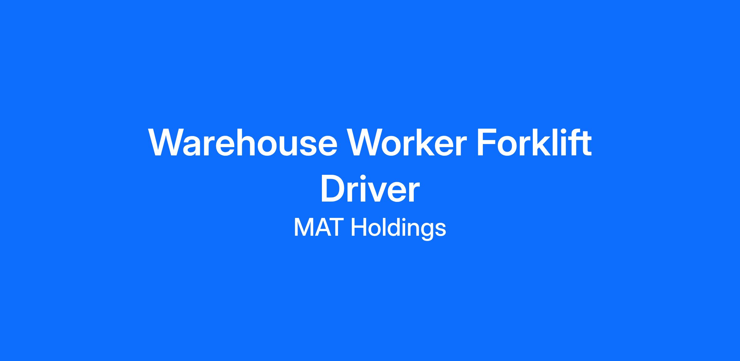 We are currently hiring a Warehouse Worker - Forklift Driver. Hours for the 1st Shift are Monday - Thursday, 6:30 am - 5:00 pm, with opportunities for overtime pay.