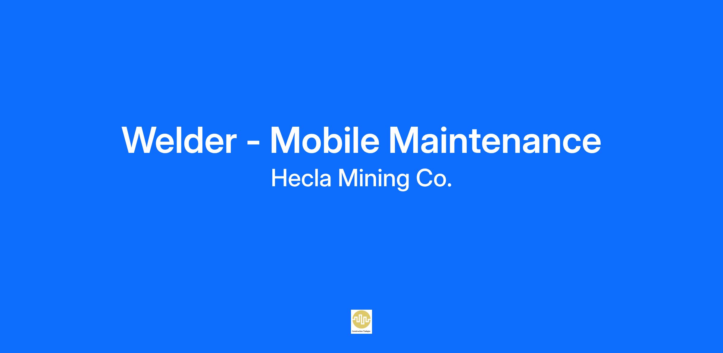As a member of the Greens Creek Maintenance group this position performs welding and fabrication, with an emphasis on maintenance inspections, adjustments, and repairs of mine mobile equipment.