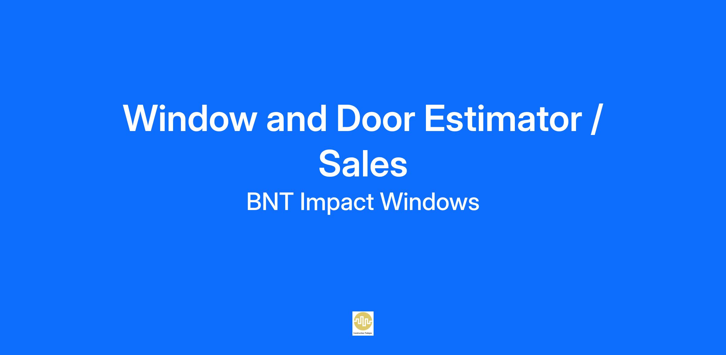 Position: Window and Door Estimator / Sales